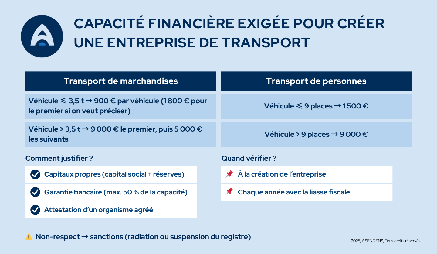 La capacité financière entreprise transport se mesure par le rapport entre le montant des capitaux propres de l’entreprise et les montants requis.